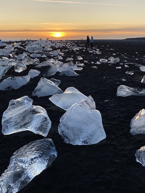 Just across the road is Diamond Beach, where ice chunks wash ashore on the black sand, glistening like gemstones in the sun. Arriving at sunset the contrast between the glittering ice and the inky shore creates a photographer’s dream.